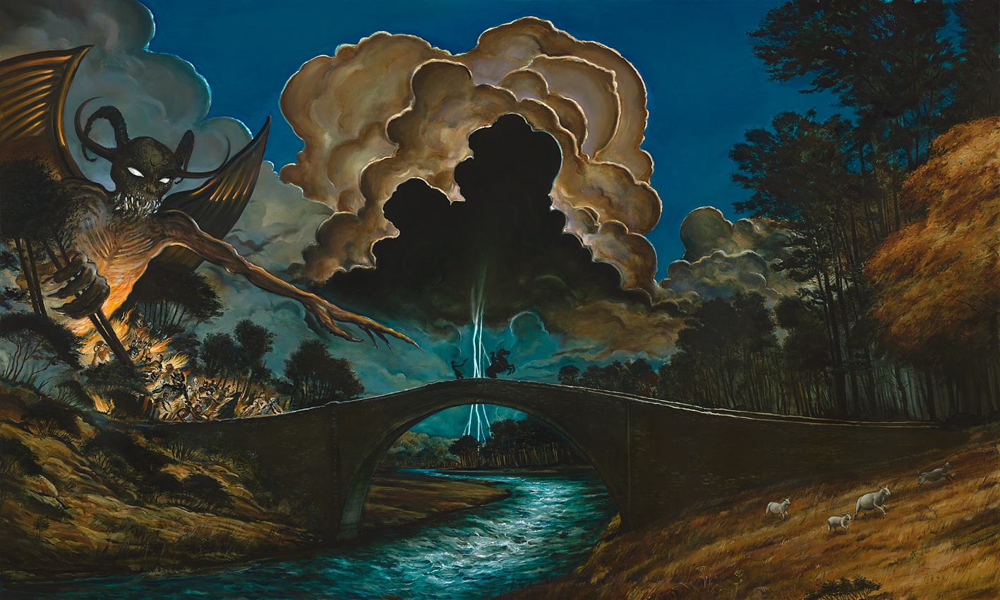 A few years ago he left all of that behind to paint. Since then has had five very successful solo shows he is known for the large cycle of paintings illustrating “Tam o’Shanter” that he did at Òran Mór in Glasgow.